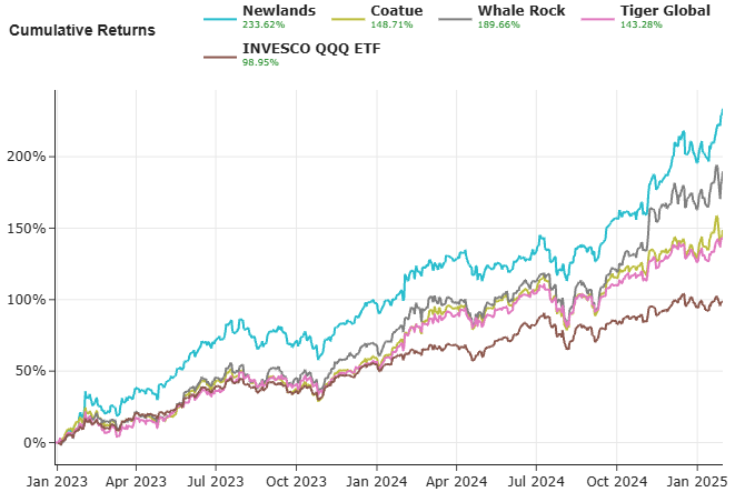 While most tech-focused managers have benefited from the post-2022 market environment, Newlands' disclosed long positions have outperformed both well-known tech funds and the Nasdaq - despite not owning Nvidia: